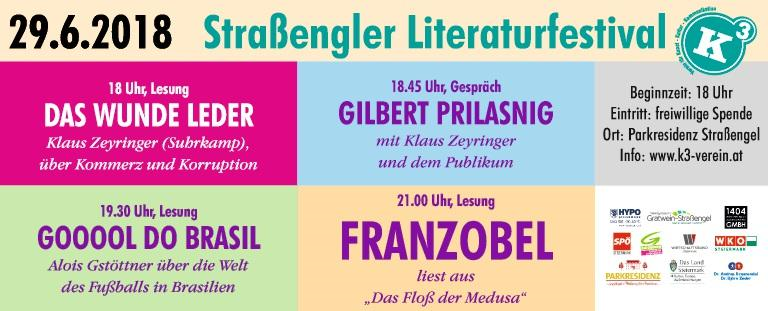 Literatur und Fußball? Da das Straßengler Literaturfestival heuer am 29. Juni 2018 und damit an einem der spielfreien Tage der Fußball-WM stattfindet, blieb dem umtriebigen Kulturverein K3 gar nicht viel anderes übrig, als das zu diesem Zeitpunkt vorherrschende Gesprächsthema auch gleich ins Programm zu packen.