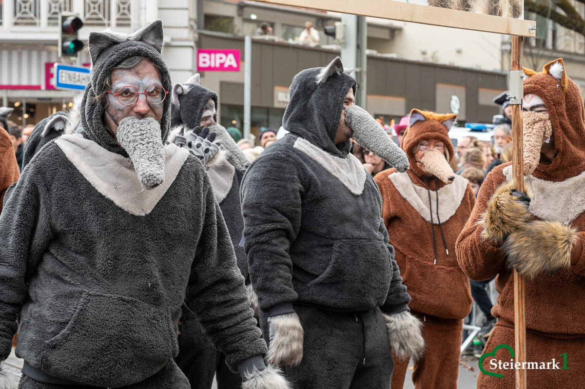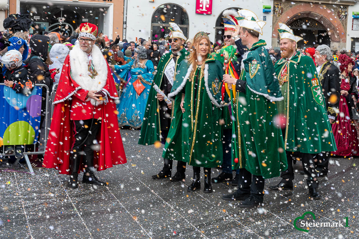 In Weiz bildete der Umzug den Höhepunkt des Faschingsfinales – heuer unter dem Motto „Hexen, Helden und Halunken“. Nach der Runde durch die Innenstadt ging’s wieder zurück zum Hauptplatz, wo die Auszeichnungen der Gruppen über die Bühne gingen.