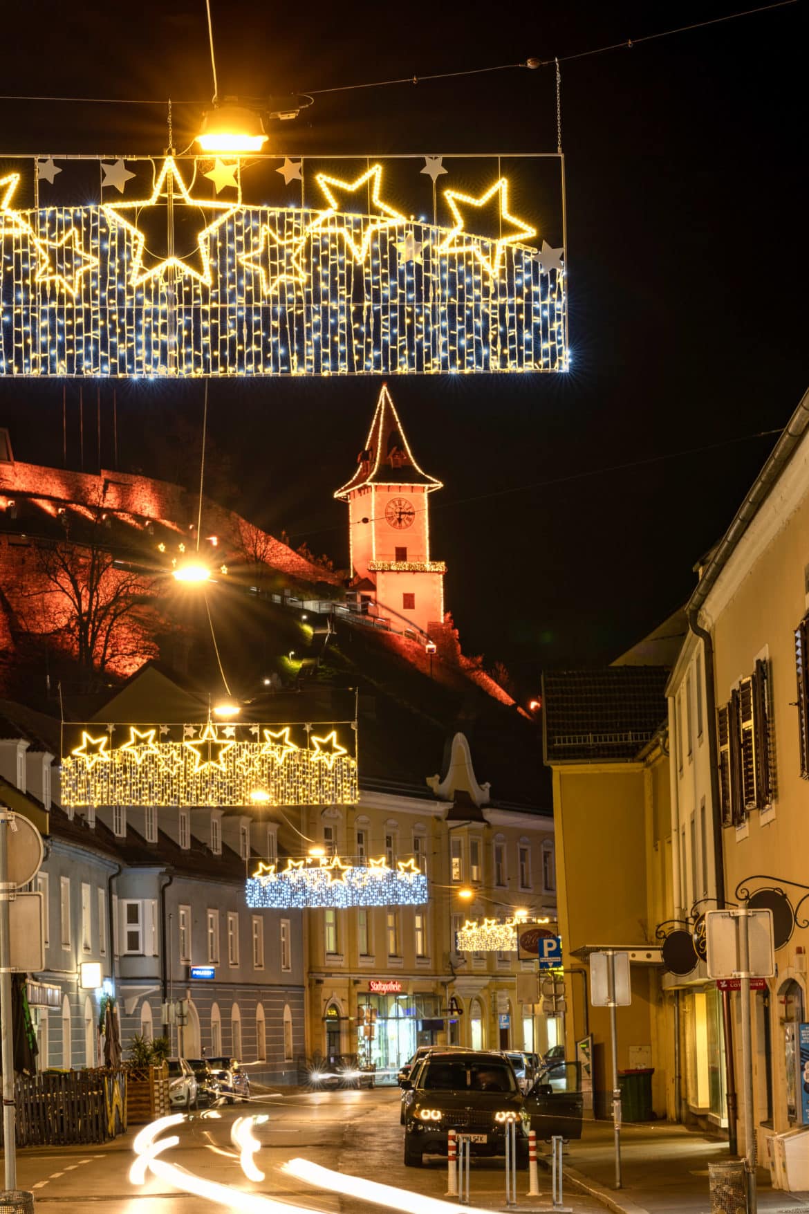 Wer gestern Abend durch Bruck an der Mur mit dem Auto gefahren ist oder einen Spaziergang durch die Stadt gemacht hat, dem ist sie mit Sicherheit ins Auge gestochen: die neue Weihnachtsbeleuchtung.