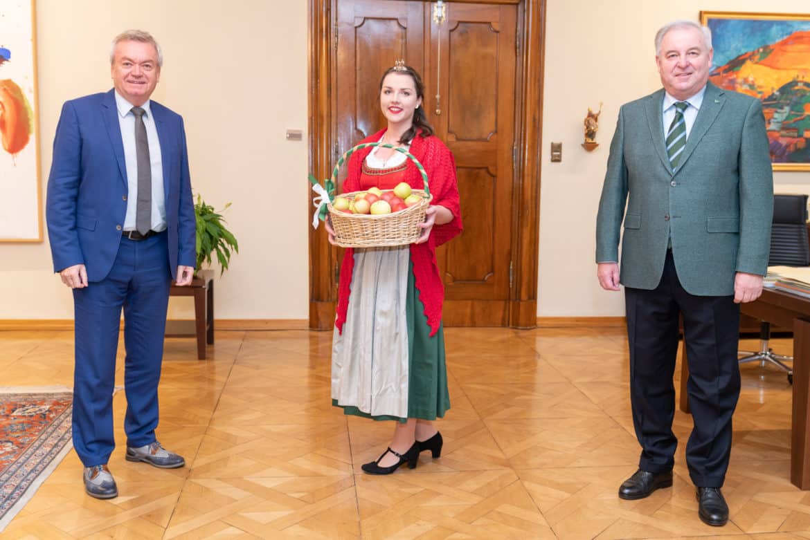 Landeshauptmann Hermann Schützenhöfer und Landeshauptmann-Stellvertreter Anton Lang empfingen diese Woche die steirische Apfelkönigin Hanna I. in der Grazer Burg. Der bevorstehende Tag des Apfels, der jedes Jahr am zweiten Freitag im November stattfindet – heuer am 13.11.2020 – war Anlass des Besuches.